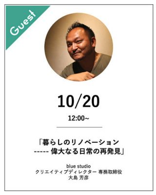 まず最初のセミナーは「暮らしのリノベーション 偉大なる日常の再発見」というテーマで12時から開催!講師の大島芳彦さんは、遊休不動産の再生流通活性化をテーマとしたリノベーション事業に取り組む起業家。その後数々の再生事業に取り組まれるなど、リノベの大御所です!