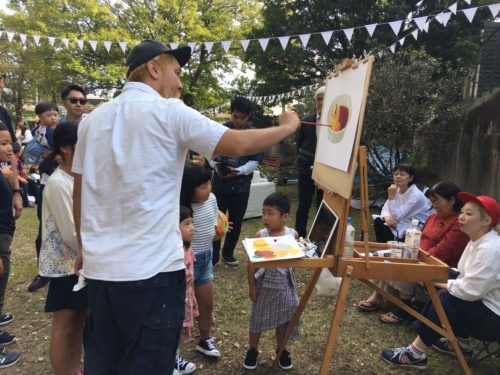 松永健志さんのライブペイントも、この距離で見ることができて贅沢!子どもたちも興味津々です。