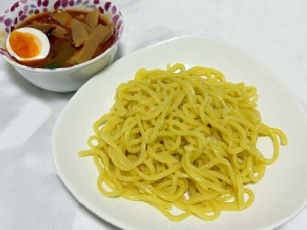 麺は熱湯で6〜7分茹で、つけダレは温めてお湯で割ります。