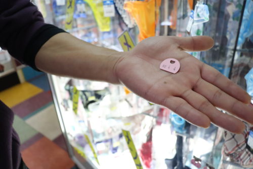 棚の上に番号がふってあるので、その棚の番号と欲しい商品の番号札をお取りください。