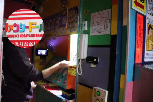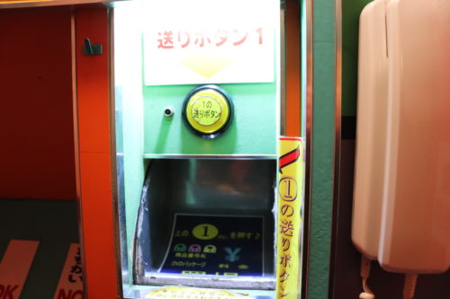 まずはこの中に購入したい商品の番号が書かれた札を投入し、「送りボタン」を押します。