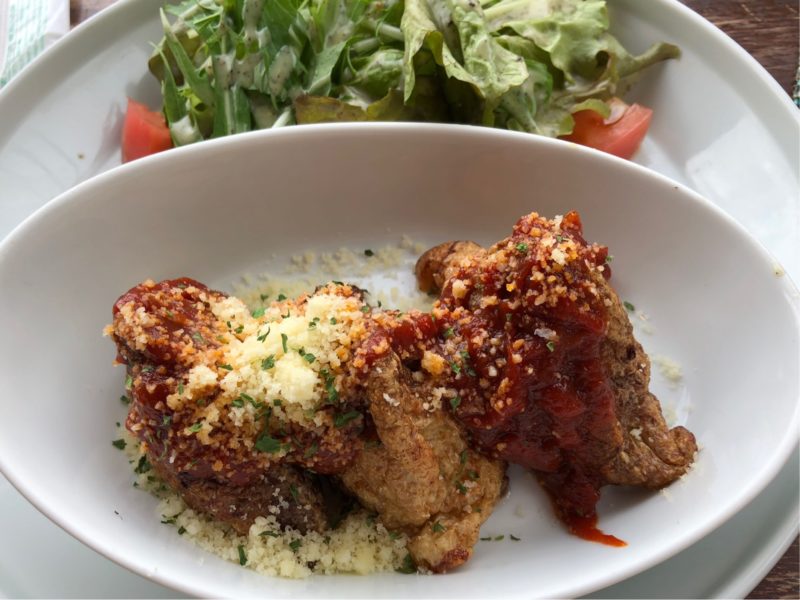 今回は初めて耳にしたお揚げのファルシを注文しました。ファルシとはフランス語で詰め物と呼ばれており、油揚げの中にトマトソースとクミンで味付けされたひき肉が入っているものです。