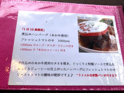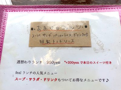 週替わりランチ以外は、全てプラス300円でスープ・サラダ・ドリンクのセット。