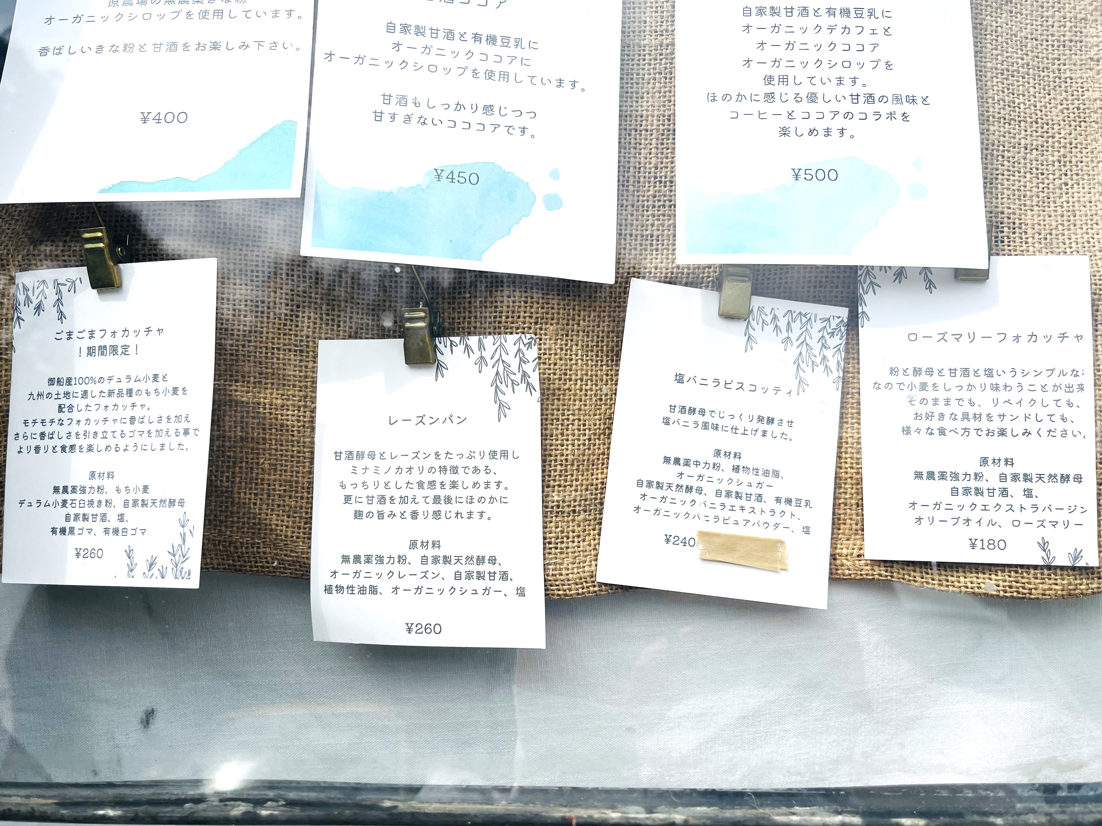 フードメニューはフォカッチャやビスコッティなど。この日は特別メニューでドーナツもありました。