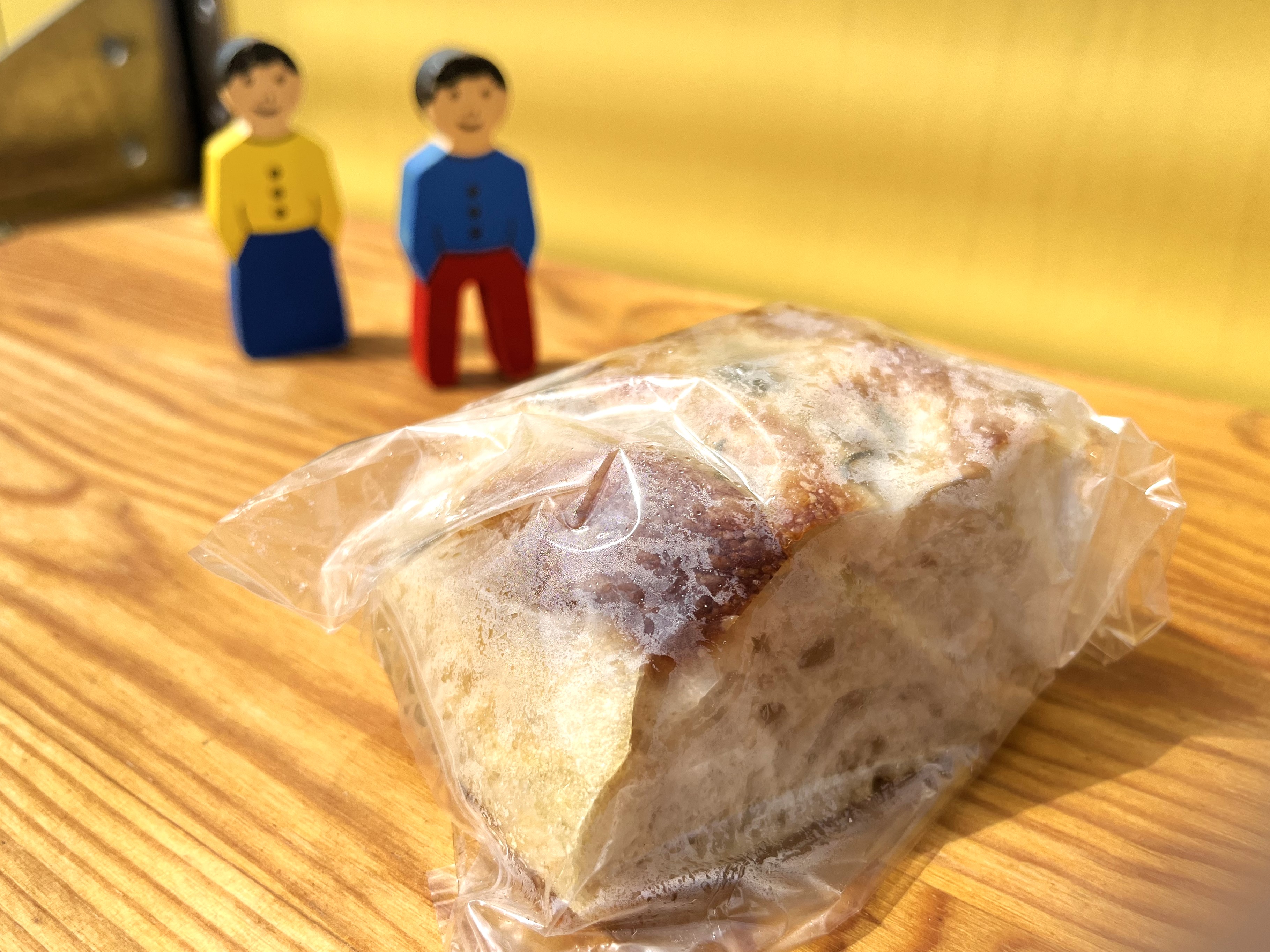 中を取り出すとこんな感じです。フォカッチャはもっちりとしていて、ローズマリーからしっかりとした塩味を感じます。これはおすすめ。