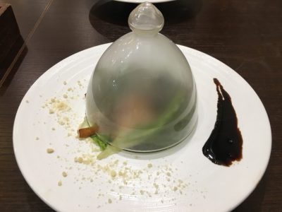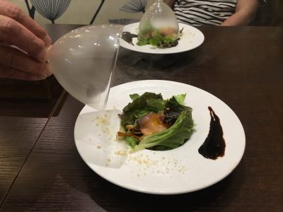 もわもわと煙が広がり、サラダが登場!これは楽しい仕掛け!