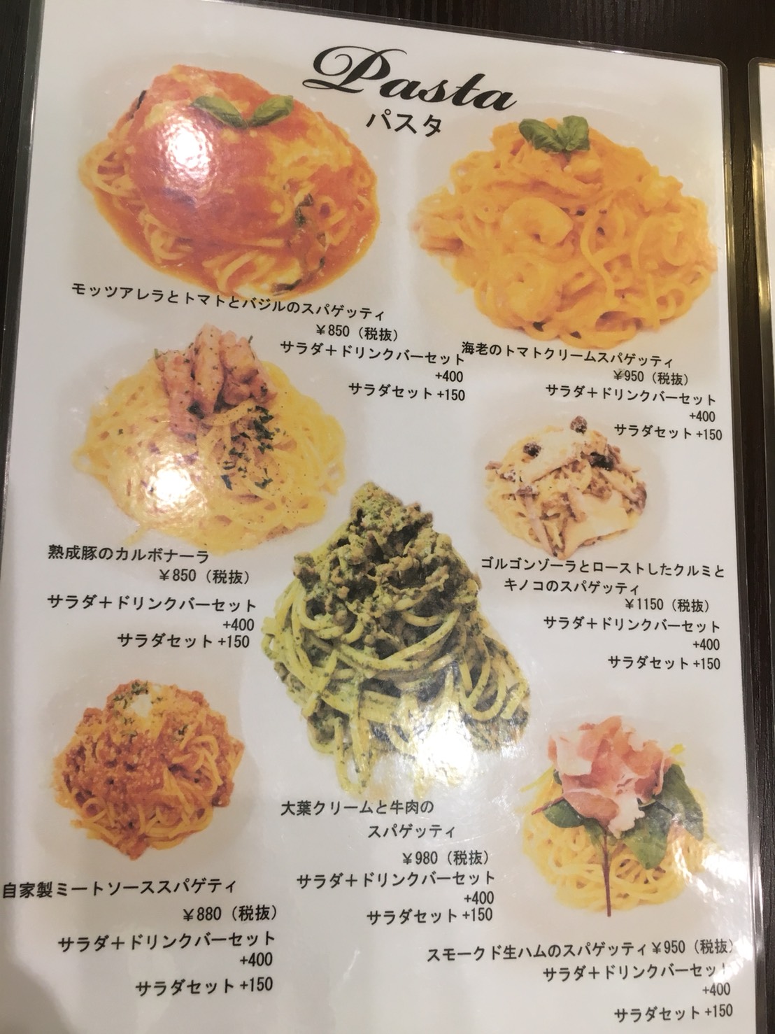 パスタは種類豊富で、熟成豚のカルボナーラなどの本格メニューが1,000円前後のリーズナブルな価格で並んでいます。