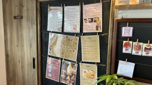 レジ横の看板で注文できるかき氷が確認できますよ。
