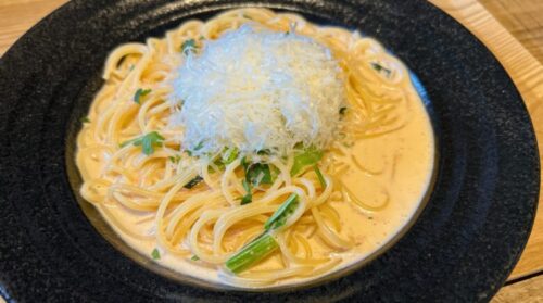 細麺でクリームがよく絡んでて美味しい。ぺろっと食べちゃいました。