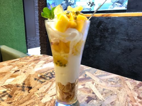雨の日はスムージーやパフェが500円になるサービスや、フードの持ち込み無料サービスもあり、いつ、何度来ても楽しめるようなお店になっています。