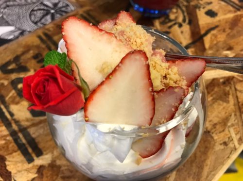1番(850円)のいちごのパフェも大きなガラスの器に、たくさんのいちごと、軽めのホイップクリーム、バタークッキーが入っていて、思う存分苺が楽しめます。