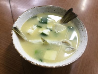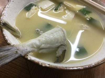 仕方なく外の看板に書いてあった、いや!今までの短い人生で食べたこともなかった「フグ汁」というのを頼んでみることにした。