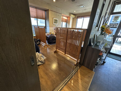 次に座敷席があり、4名用の座敷が4つ、8名用の座敷が1つあります。