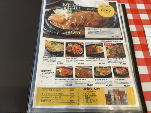 鉄板焼きは単品なので、ライスなどセットをつけて注文しましょう。