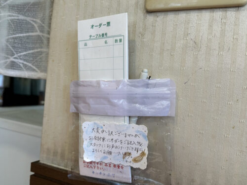 メニューが決まったら、オーダー表に書いて店員さんを呼びましょう。