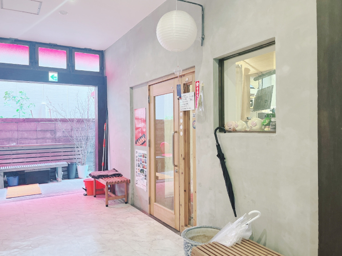 さっそくお店に入っていきましょう。淡い色合いの外観がお洒落ですね。