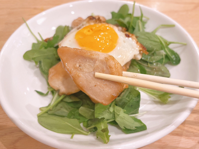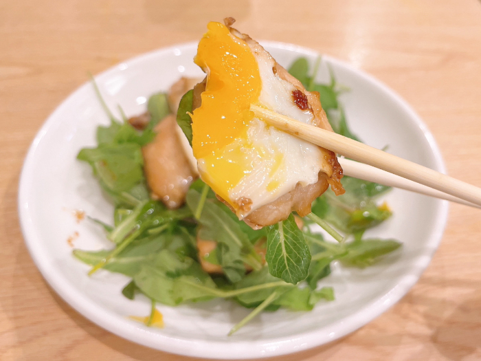 目玉焼きも半熟加減がちょうど良い!甘めのタレと一緒に食べても美味しい。