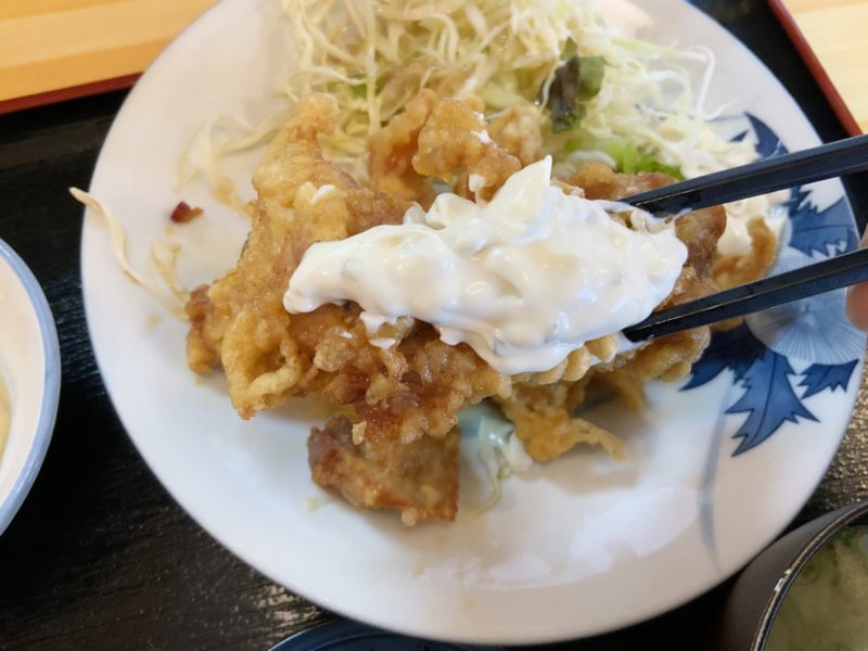 このチキン南蛮はカットしたあと揚げてあるので、全体が衣に包まれています。そのため、たっぷりかかった黒酢がいい感じに染み込んでくれています。