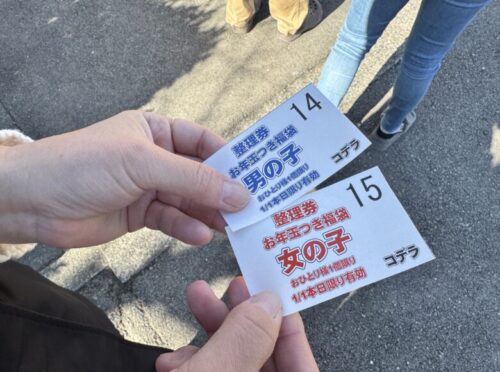 男の子用と女の子用それぞれ40個ほど準備してあり、事前に整理券を配布されます。