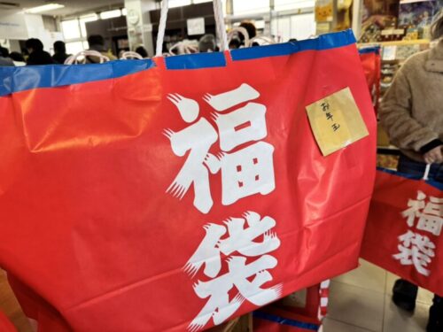 さてこの福袋、2キロから3キロくらいあります。それに「お年玉」がついてくるのでかなりデラックスですよ!