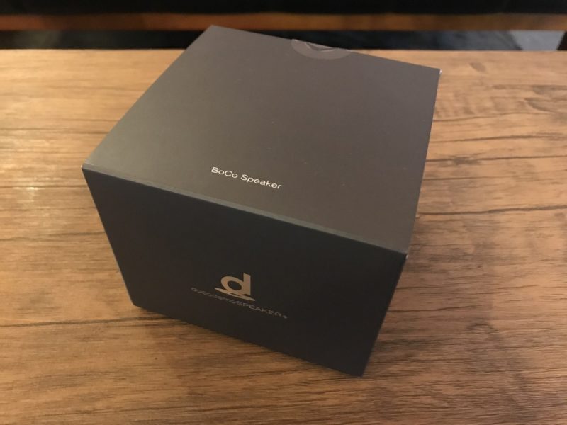 入っていたのは一つの黒い箱。上部にはBoCo Speakerと書かれています。