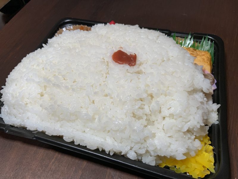 持ち帰ってフタを開けると、ご飯でおかずの半分が見えなくなっていました。