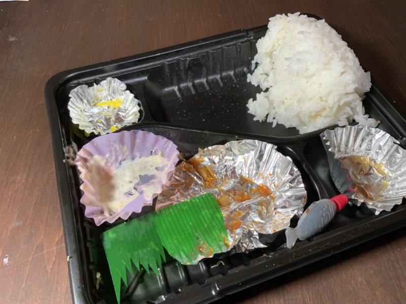 そして、おかずを食べ尽くしてなお、小さなお茶碗1杯分くらいのご飯が残りました。