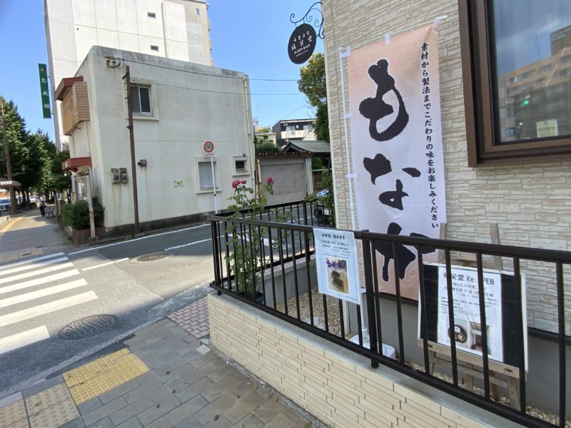 中央区大江本町、味噌天神近くを通っていると目に入った「もなか」ののぼり旗。