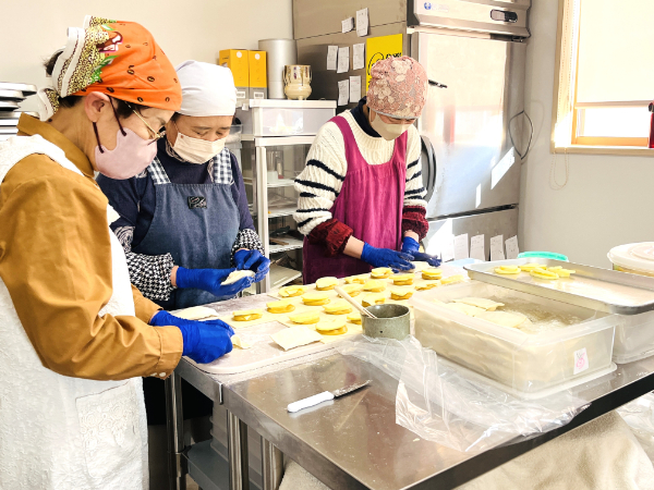 数人かけて人気のいもパイを作っているのはずーっと見ていられます!
