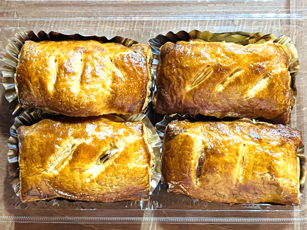 いもパイ230円・ミックスいもパイ(あんこといも餡)250円・りんご入りいもパイ250円・ばなな入りいもパイ240円の4種類があります。