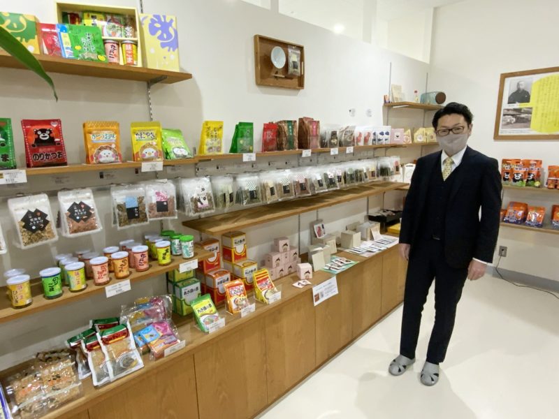 フタバ本社内にあるショップ「ふたば苑」。「御飯の友」はもちろん、フタバの商品が販売しています。