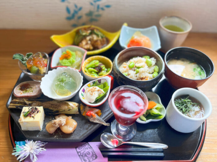 南阿蘇村にある「ランチ&カフェふわら」は季節の野菜をたっぷり使った御膳が人気のお店です。12種類の野菜料理が圧巻なんです。早速ご紹介します。