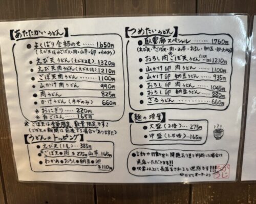 うどんのメニューはこちら。
