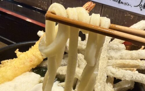 手打ち麺はこしがあります!もぐもぐ回数も多くなりますし、よくばり全部のせうどんは、よくばっているので、かなり満腹にっっ。お肉が甘い味付けでそれがお出汁に広がり、個人的には大好きな味でした。