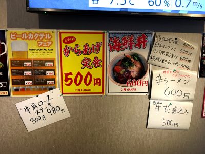 唐揚げ定食に至っては500円で食べられます!丼物も海鮮丼が600円と激安!小型の器ではなく、大きな器で出てきますよ。牛肩ロースステーキが300gで980円というのも驚きの価格!