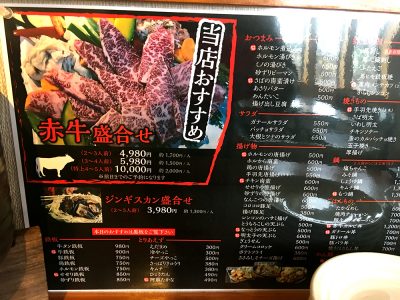 夜営業では、あか牛の焼肉や、ジンギスカンまであります!鍋メニューも5種類から選べるのが嬉しいですね。