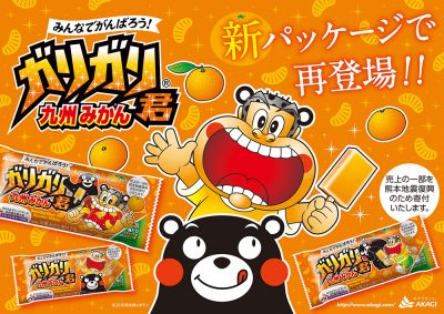 赤城乳業の大人気アイス「ガリガリ君」と熊本県がコラボした「ガリガリ君 九州みかん」。