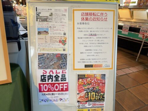 熊本市東区、戸島にある肉のオオツカ「ラインガルテン」が、2025年7月16日から移転に伴い休業に入ります。