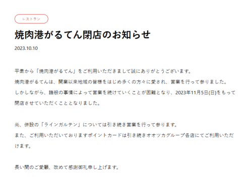 ただ今回の閉店は焼肉がるてんのみで、お肉の販売所は変わらず営業を行っていますのでお間違いなきようご注意ください。