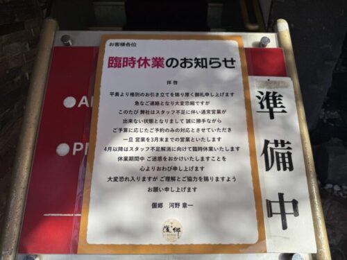 ただ完全閉店ではなく、あくまでスタッフが揃うまでの一時休業です。