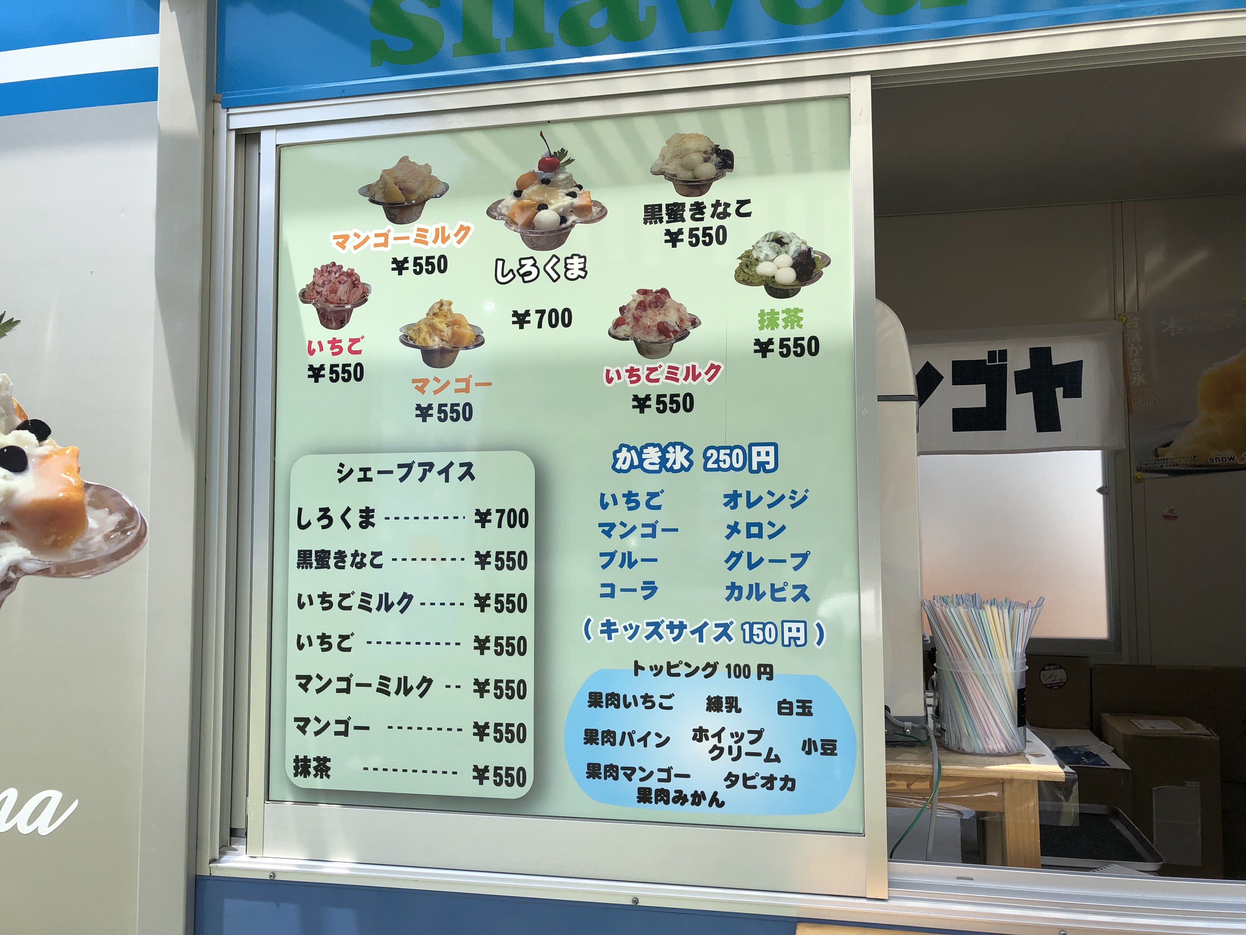 しろくま以外は550円で食べられます。シェーブアイスは、大体どこの店舗でも1個700円弱はしますのでこの値段設定は魅力的です。