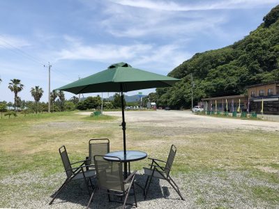 かなり広めの敷地にテーブルと椅子が準備されています。