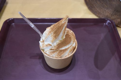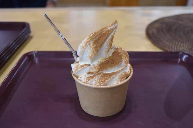 ソフトクリームは濃厚で、しっかりジャージー牛乳の味がします。ほろ苦いコーヒーとよく合います。玄米コーヒーがかかっていないソフトクリームは、多い日には1日約250本も売れるそう!