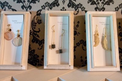 陶器で作られたピアスやネックレスは珍しく、どれも個性的です。小さな陶器に穴を開けるのが大変な作業とのこと。