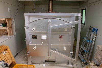 1階奥には作品を焼く窯も設置されています。イメージしていた昔からある窯とは違い、メタリックでハイテクな機械窯です。