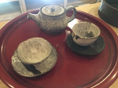 趣のある急須やお湯のみ。