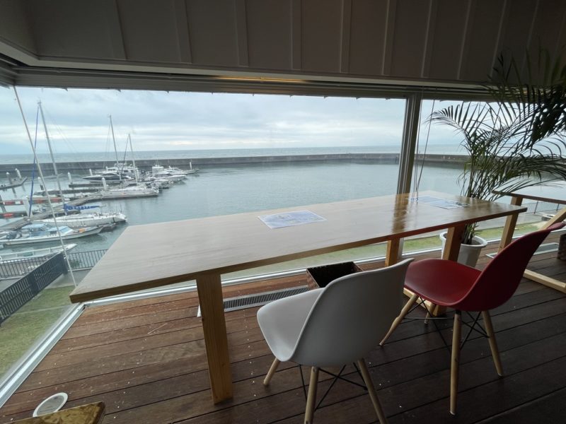 ヨットハーバーと広々とした海が目の前に広がります。加山雄三の曲が流れてたら最高にテンション若大将です。(流れてません)