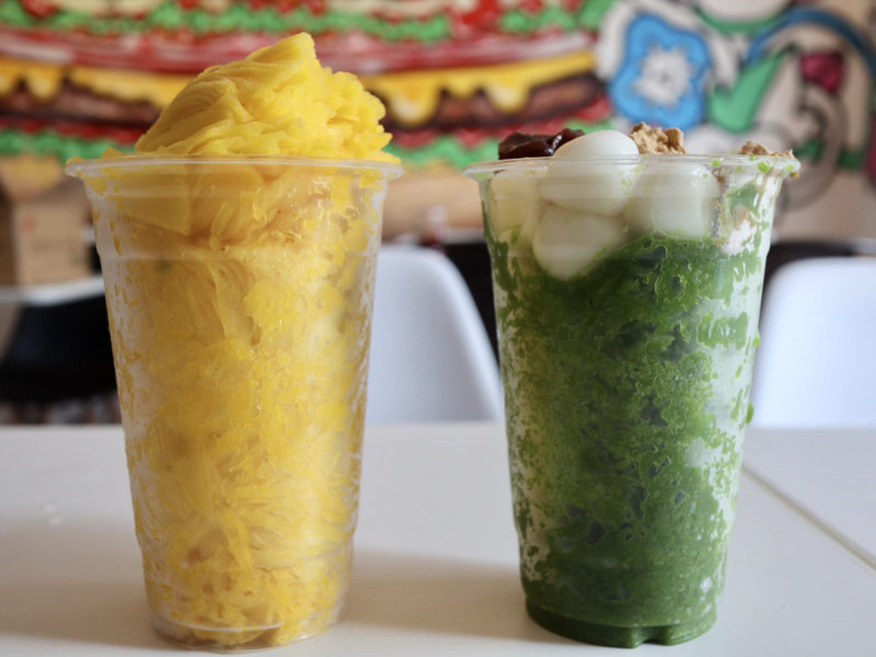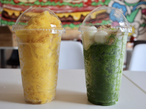 マンゴーシェーブ(イートイン価格で税抜750円)と、抹茶シェーブ(イートイン価格で税抜900円)をいただきました。美しい!