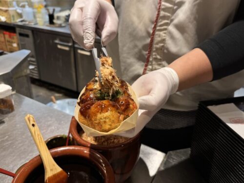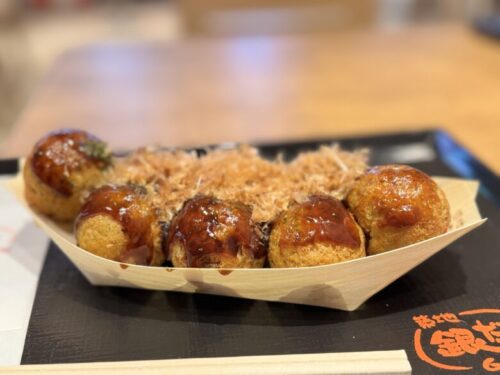 ソースの味から始まり、かつお節の風味がふわっと広がり、噛むと紅しょうががアクセント。