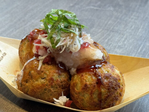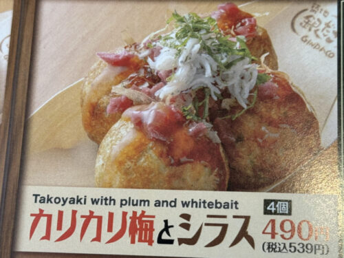 毎月、趣向を凝らした限定のたこ焼も下通店とは異なり、今月の熊本三年坂店ではカリカリ梅とシラス。